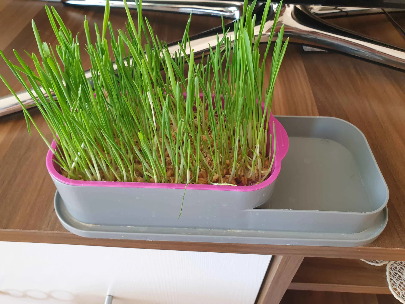 Topraksız tasarımı sayesinde hijyeniktir, 5 paket çim tohumu ile uzun süre kullanılır.